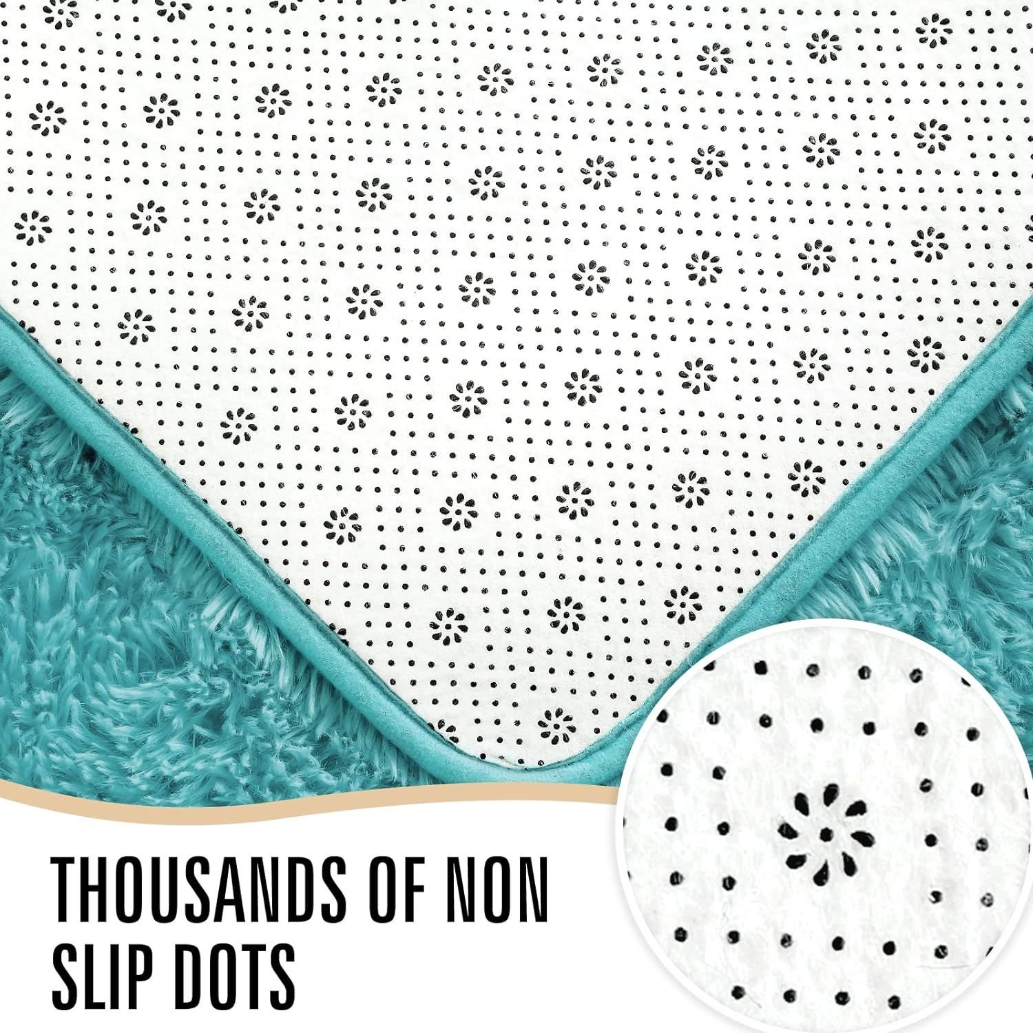 Superior Quality Area Rug: Are you still worried about the fluff falling on the floor? The fluffy area rug using improved weaving technology, the fluff will keep shaggy long time and not shed; Also thousands of tiny, non slip dots will keep the bedroom rugs stay in place.