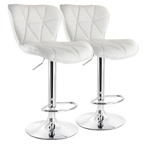 Elama 2 Piece Diamond Tufted Faux Leather Adjustable Bar Stool in White with Chrome Base