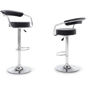 Set of 2 Modern Bar Stools with Black Faux Leather Round Seat with Footrest