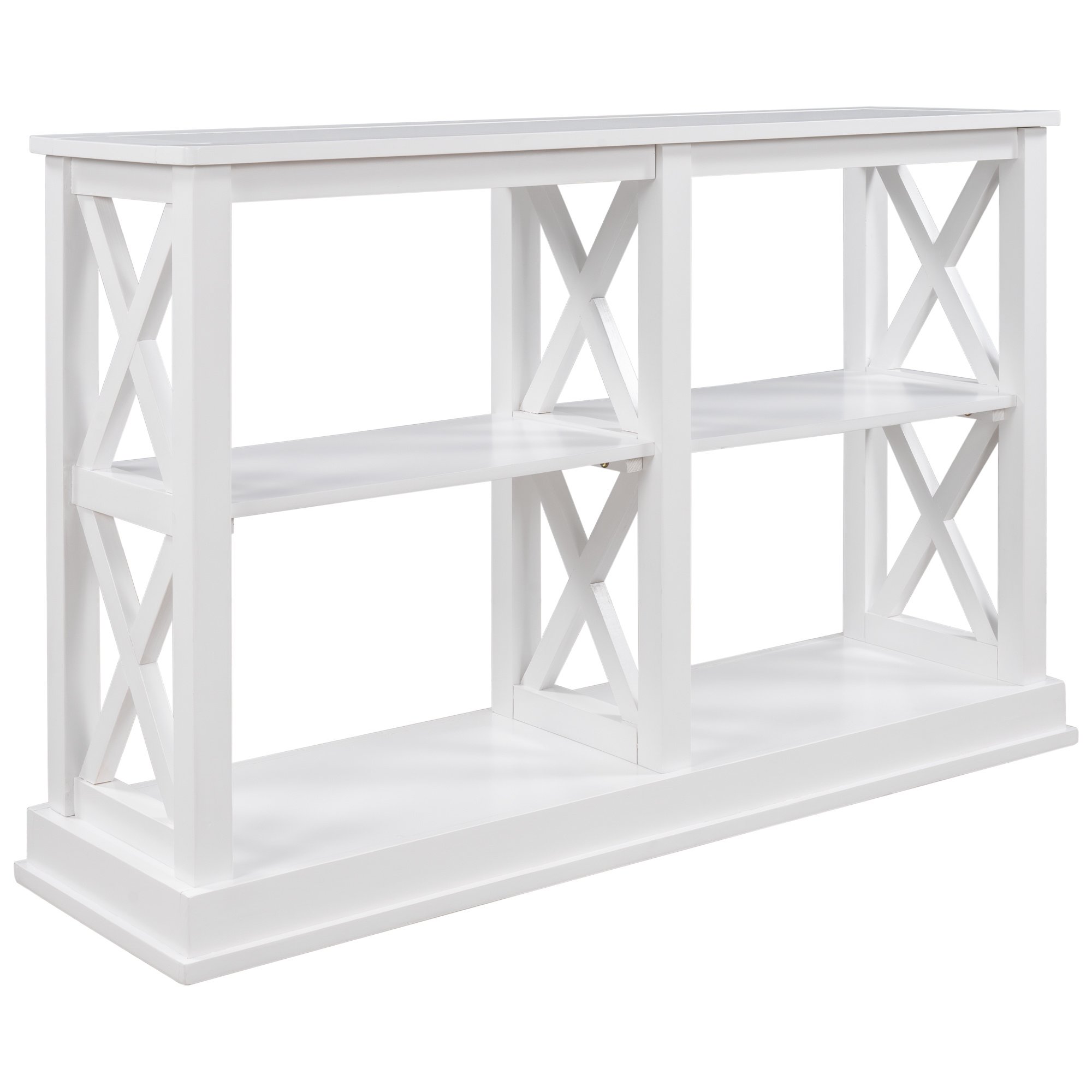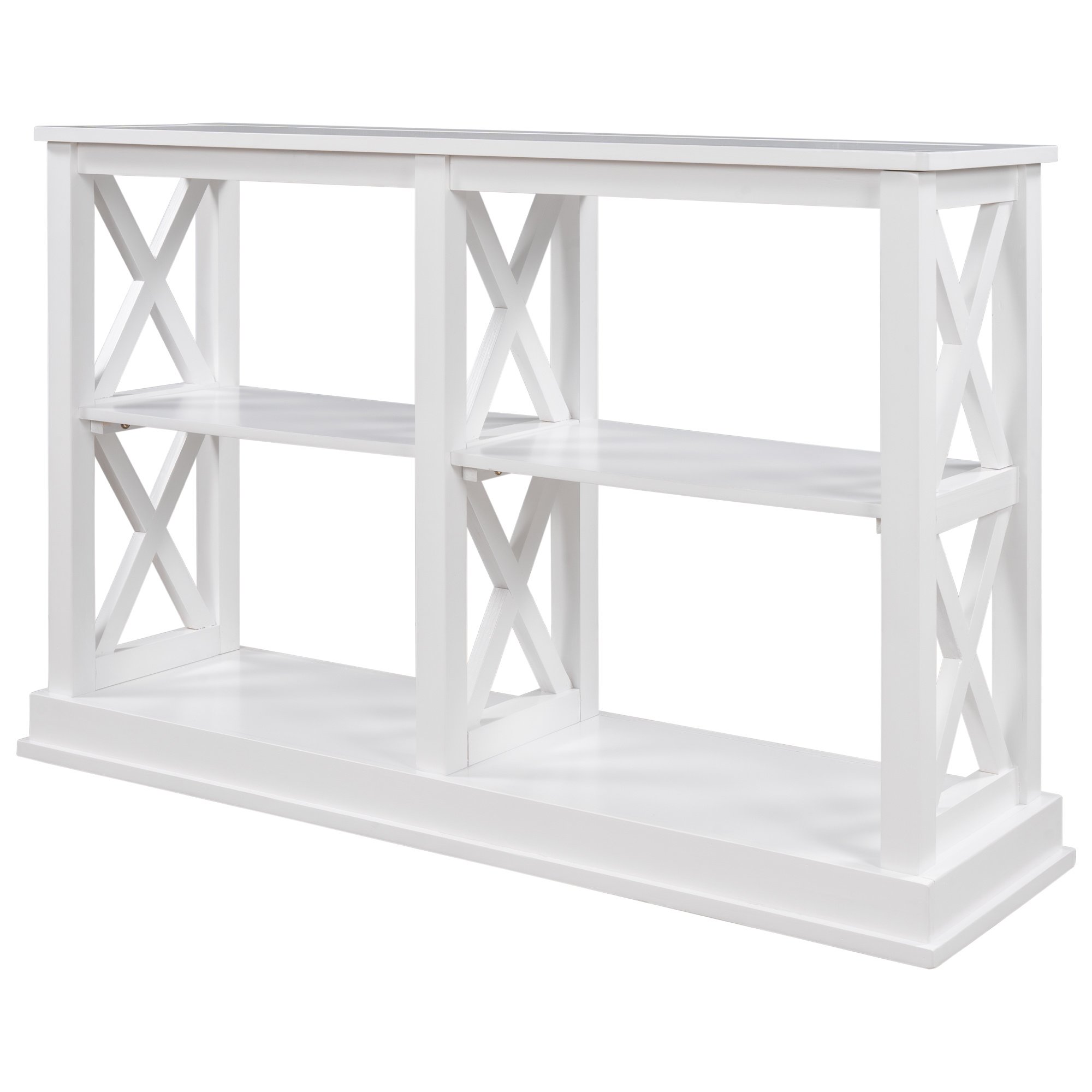 Open and X legs design meets simple and chic style in this elegant console table. Finely distressed for a reclaimed aesthetic, this console table is crafted of MDF with veneer malaleuca, and the pine legs and frame presents a unified aesthetic feeling.