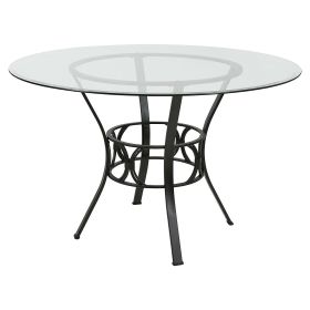 Round 48-inch Clear Glass Dining Table with Black Metal Frame
