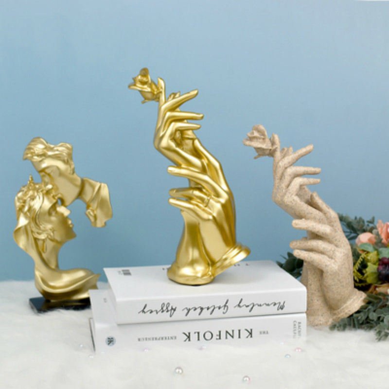 Home > Home Decoration Resin Sculpture Statue Living Room Wine Cabinet Modern Fashion Hand-held Rose Ornaments Golden Crafts Gift - S-B