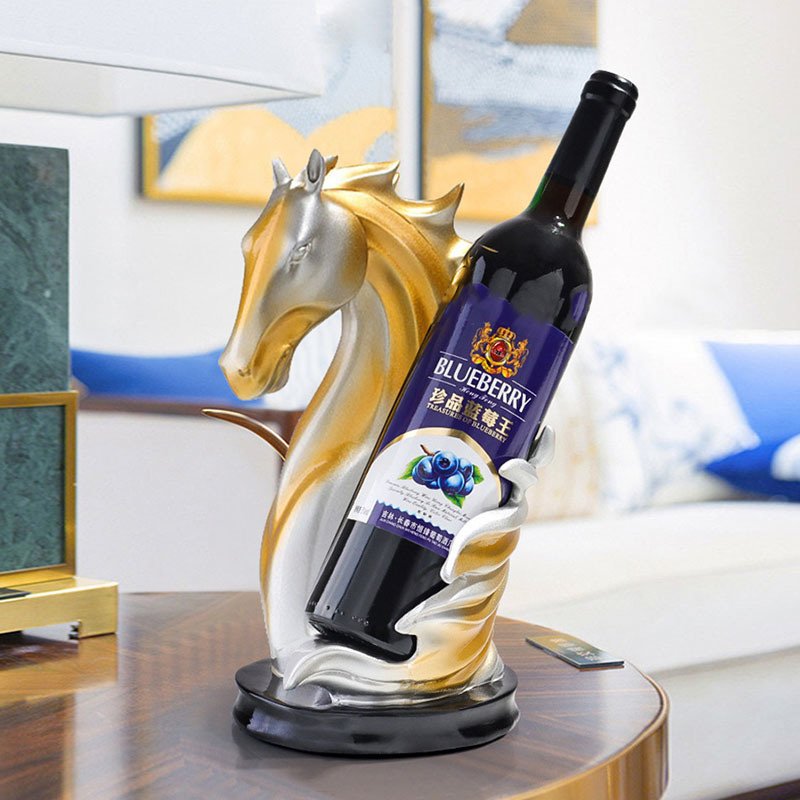 Home > NORTHEUINS Resin Horse Head Wine Rack Figurines Interior Bottle Holder Storage Ornaments Home Living Room Tabletop Decorations - Silver