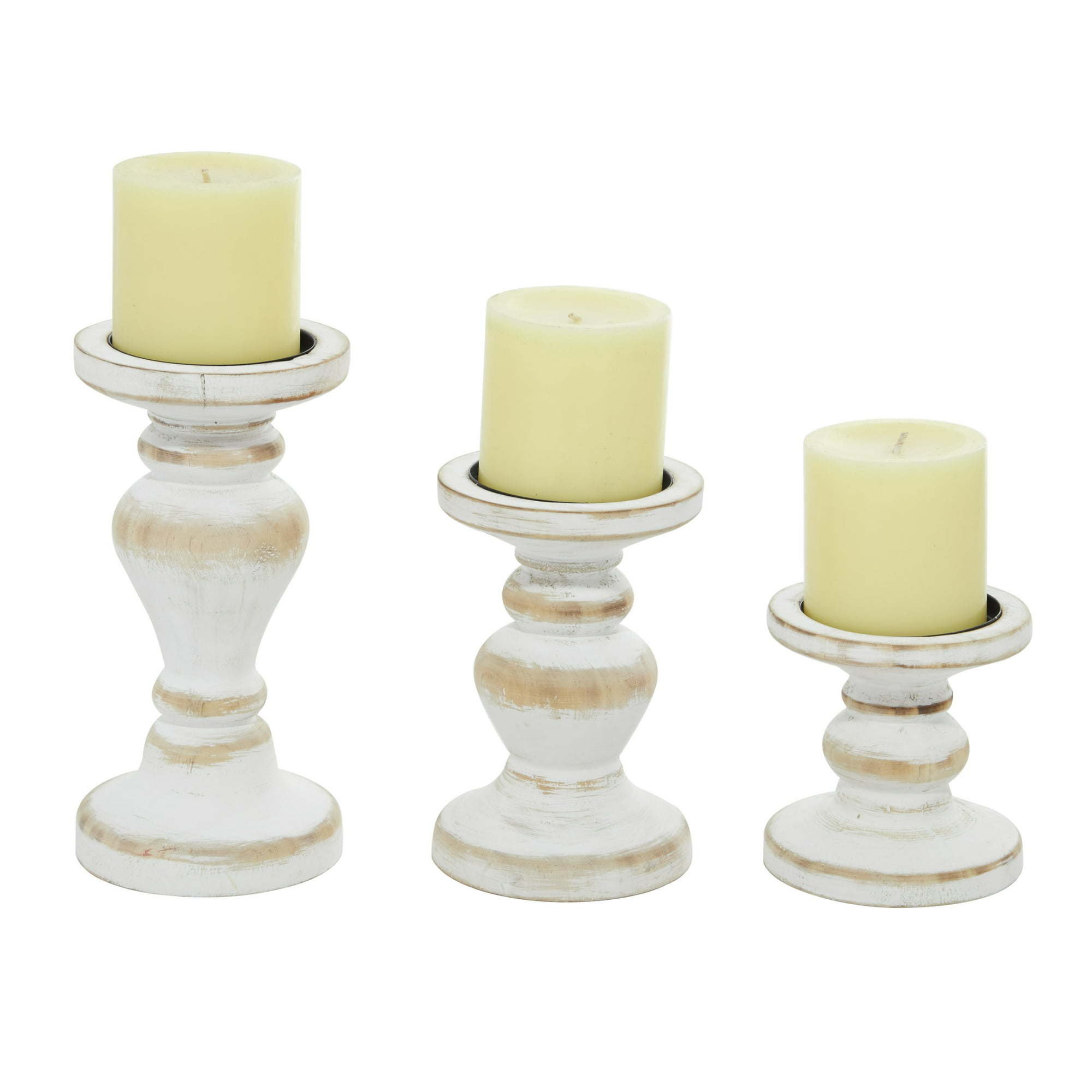 DecMode 3 Candle White Wood Turned Style Candle Holder, Set of 3 makes a perfect addition to any home