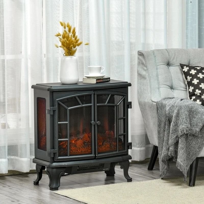 Creating an inviting room starts with comfort, and there's nothing more comforting on a cold day than a nice roaring fire. This Black Remote Controlled Electric Fireplace Heater Realistic LED Flames and Logs works independent of the heat, and can be adjusted to 750- or 1500-watts. You can turn on the electric fireplace on the hottest day of the year or keep the heat off on the coldest day of the year. This portable fireplace radiates a generous amount of heat for the space it occupies, clocking in at an area of 215 sq ft.