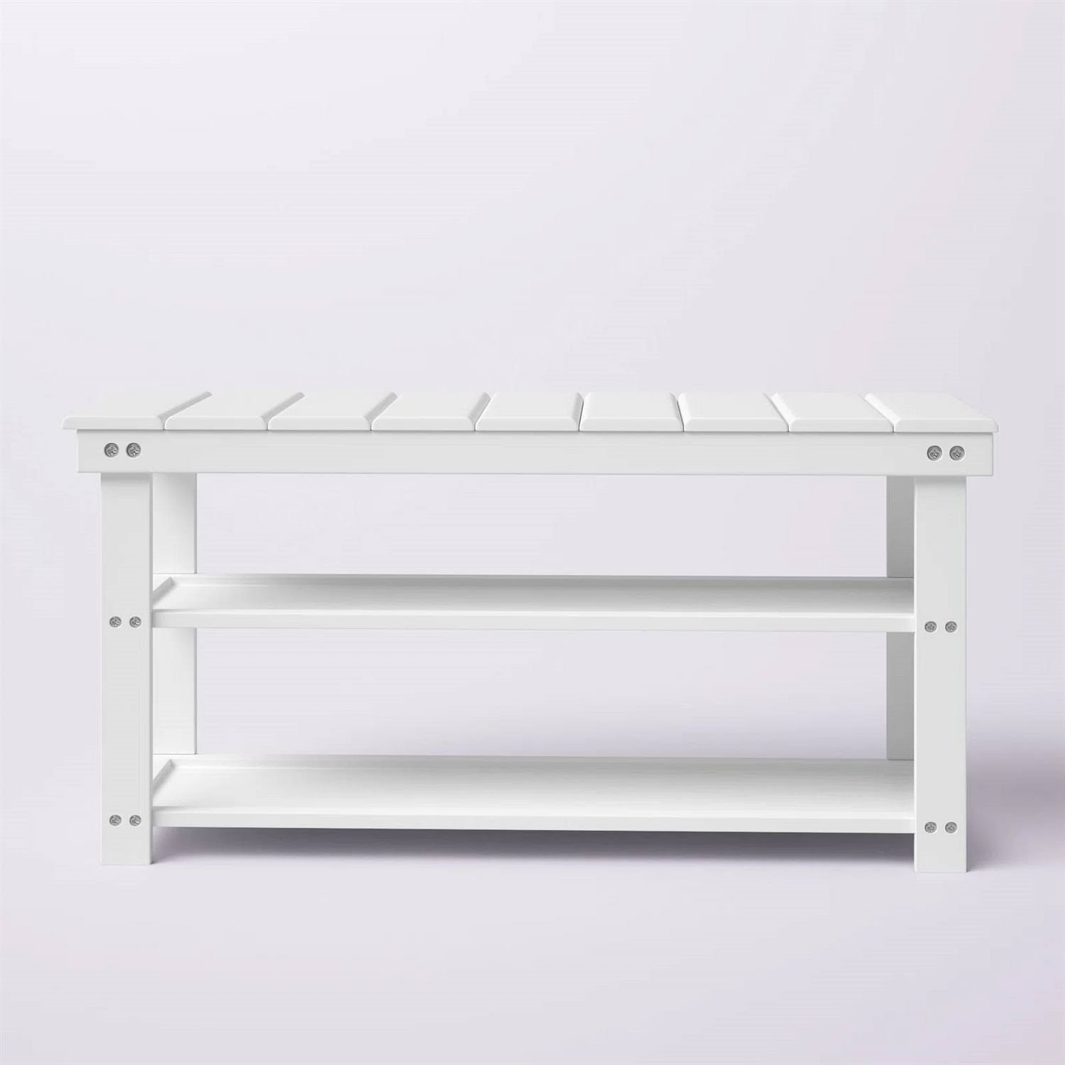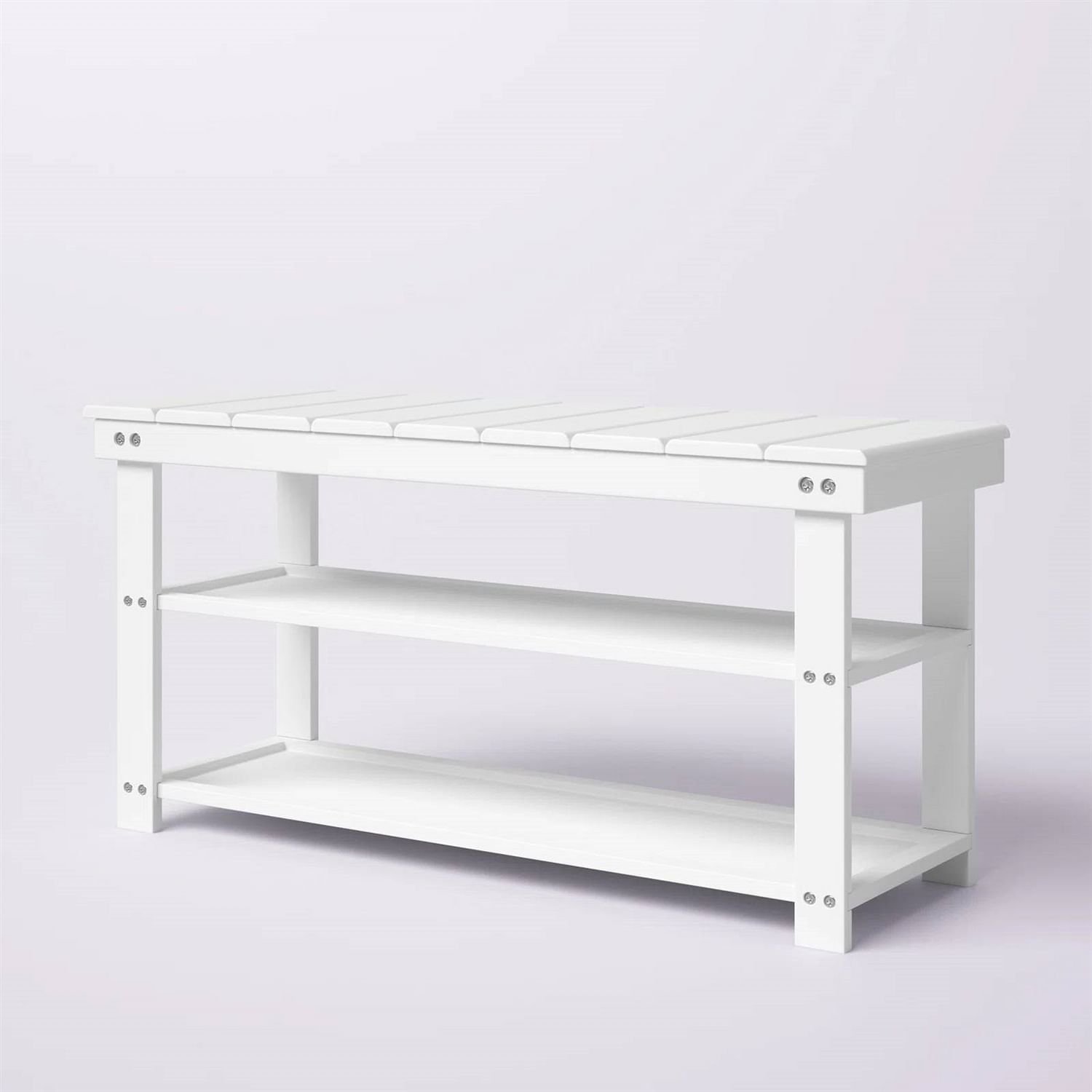 White Slatted Wood 2-Shelf Shoe Rack Storage Bench For Entryway or Closet White Slatted Wood 2-Shelf Shoe Rack Storage Bench For Entryway or Closet White Slatted Wood 2-Shelf Shoe Rack Storage Bench For Entryway or Closet