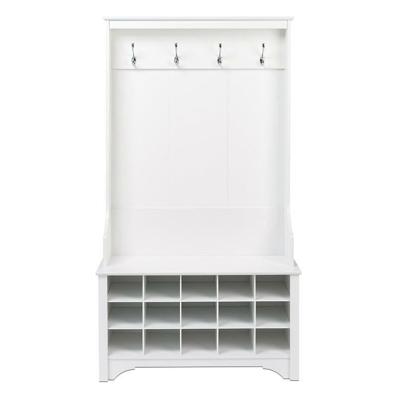Home > White Entryway Hall Tree Shoe Cubbie Coat Rack
