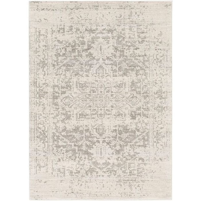 Give any room a vibrant oriental feel with Persian patterns with this 3'11" x 5'7" Distressed Oriental Area Rug in Light Grey / Beige. Theis rug is power-loomed from stain-resistant polypropylene, so it stands up to spills and splashes. The geometric pattern is distressed for a lived-in vibe in any space. Comes in medium 0.3" pile height, ideal pick for low traffic rooms like the living room or bedroom. Easy care, just vacuum with no beater bar or rotating brush or spot clean with water / mild detergent. To keep securely in place, we recommend pairing it with a rug pad.