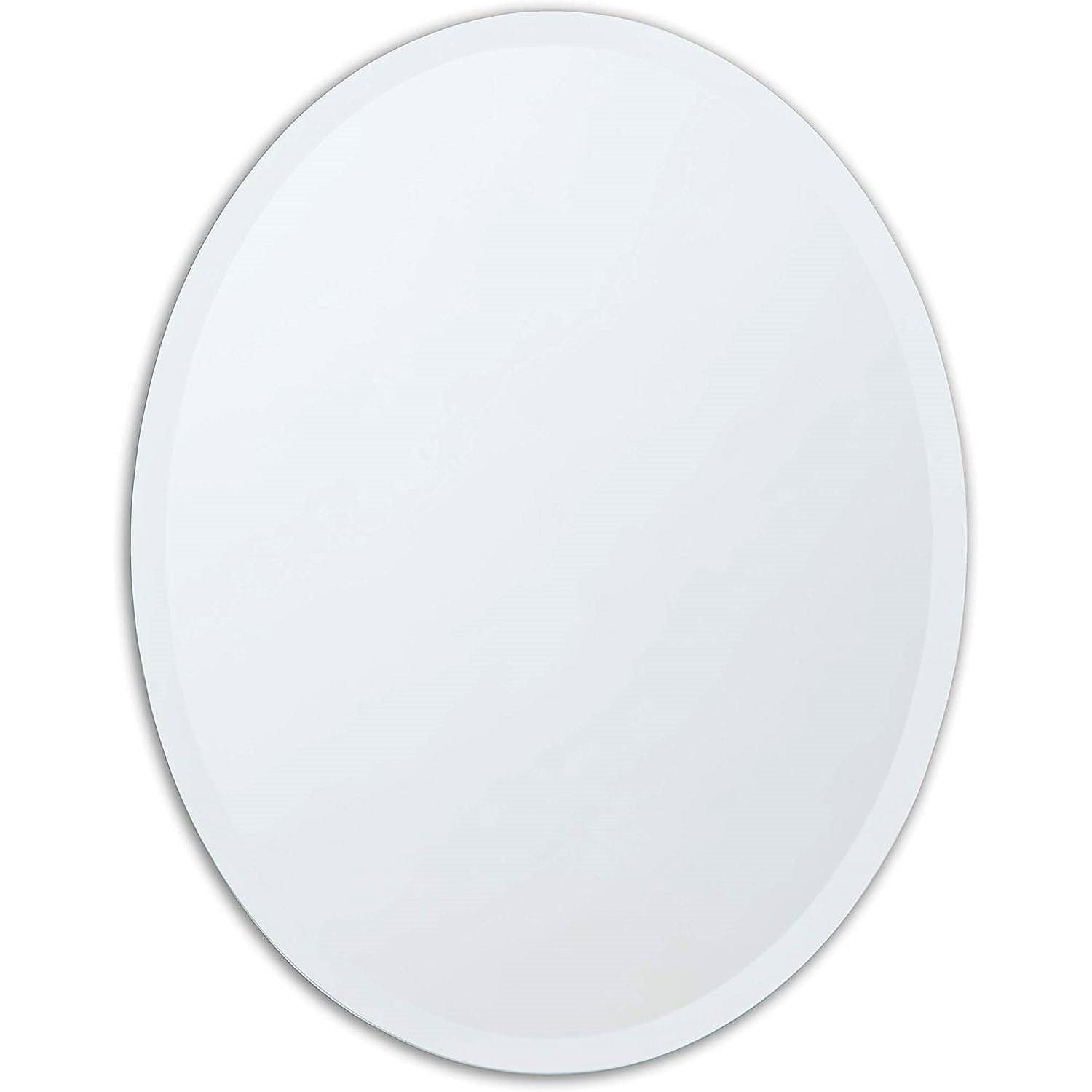 The Classic Oval 36-inch Frameless Beveled Bathroom Bedroom Living Room Vanity Wall Mirror will make a great addition to any room in your home. Since there is no frame, this oval mirror makes it easy to match colors in your bathroom, bedroom, living room, or anywhere in between. Finely crafted 1-inch bevel offers showroom quality, while the polished edges ensure safe handling and a finished appearance.