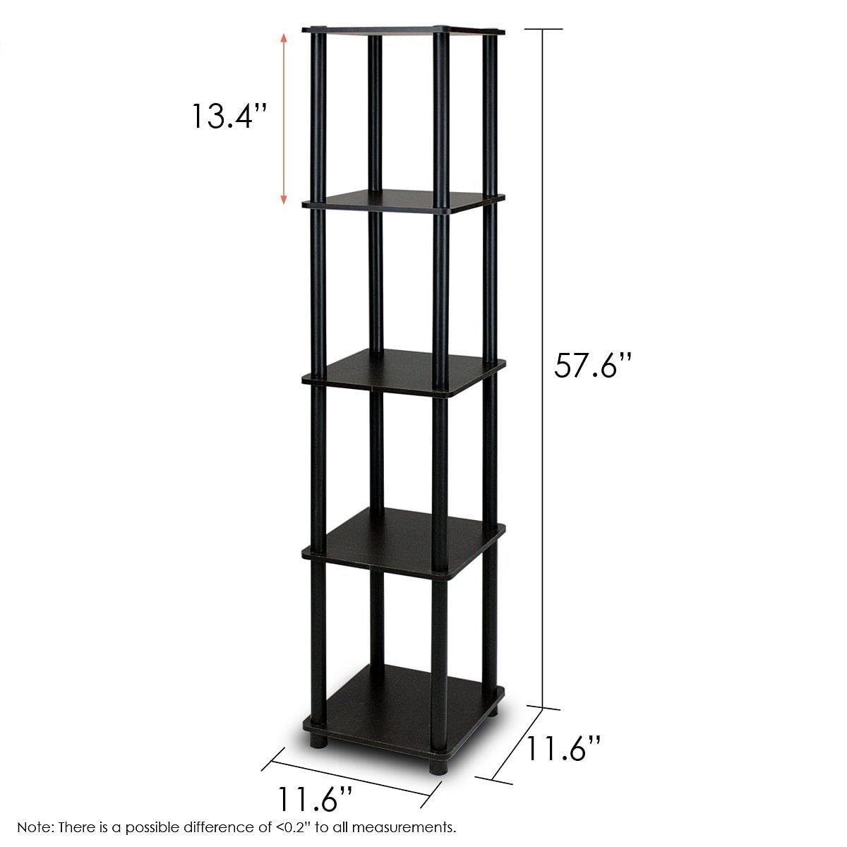 5-Tier Square Corner Display Shelf Bookcase in Espresso/Black