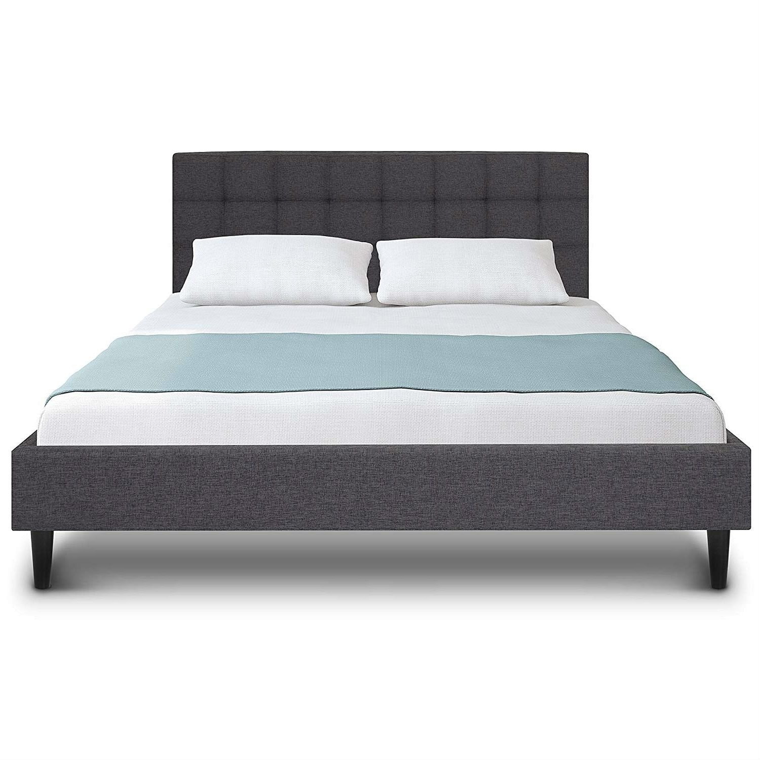 Mod style meets modern innovation with this Full size Grey Mid-Century Modern Upholstered Platform Bed Frame with Headboard. Traditional box springs are a thing of the past with this elegant upholstered platform bed frame, which features mattress support in the form of wooden slats for a low-profile look. A good nights sleep has never looked so good! SPECIFICATIONS: Overall Dimensions: 82(L) x 58.5(W) x 36.8(H); Bed: 75(L) x 54(W); Floor to Bed Frame Top: 15.5(H); Weight: 78.9 lbs.; Weight Capacity: 500 lbs. combined, excluding mattress weight; Color: Gray; Frame Material: Wood; Size: Full; No mattress included; All hardware stored in a zip compartment in unit; Assembly required (with instructions).