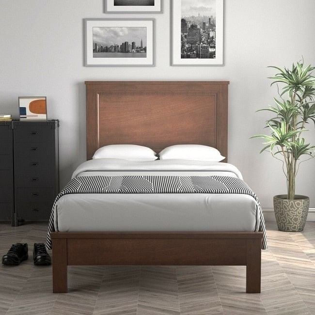 Twin Size Modern College Dorm Wooden Platform Bed in Walnut