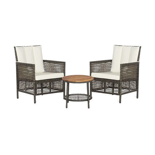 3 Pieces Patio Rattan Furniture Set with Cushioned Sofas and Wood Table Top-White 3 Pieces Patio Rattan Furniture Set with Cushioned Sofas and Wood Table Top-White 3 Pieces Patio Rattan Furniture Set with Cushioned Sofas and Wood Table Top-White