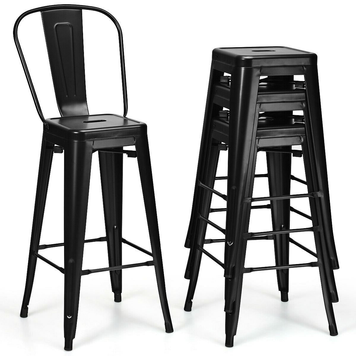 Set of 4 Black 30" Height High Back Metal Industrial Bar Stools Set of 4 Black 30" Height High Back Metal Industrial Bar Stools Set of 4 Black 30" Height High Back Metal Industrial Bar Stools