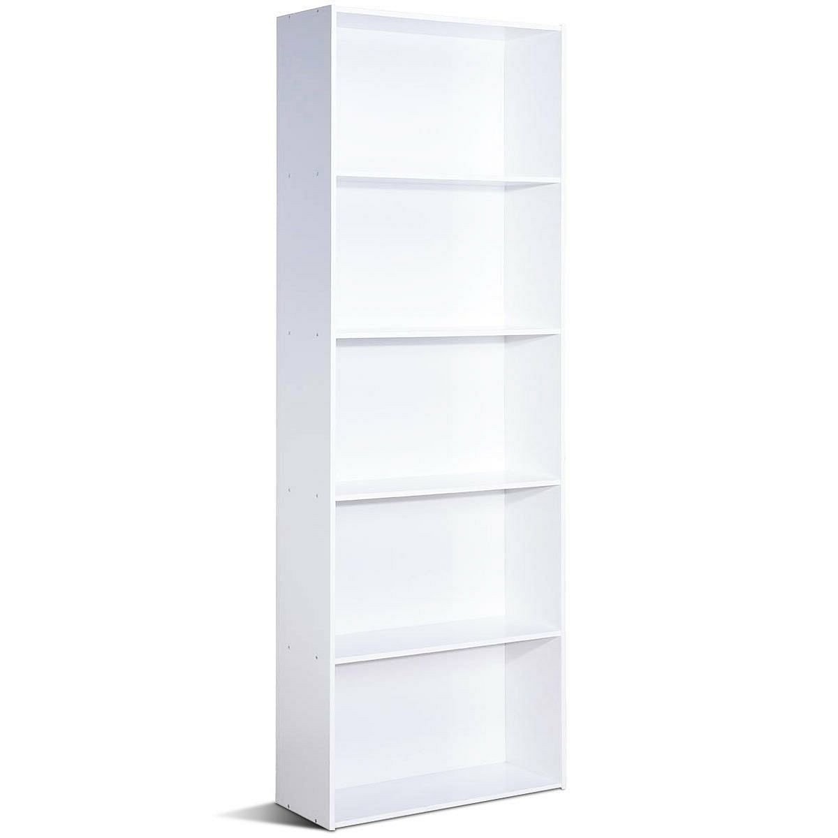 Modern 5-Tier Bookcase Storage Shelf in White Wood Finish