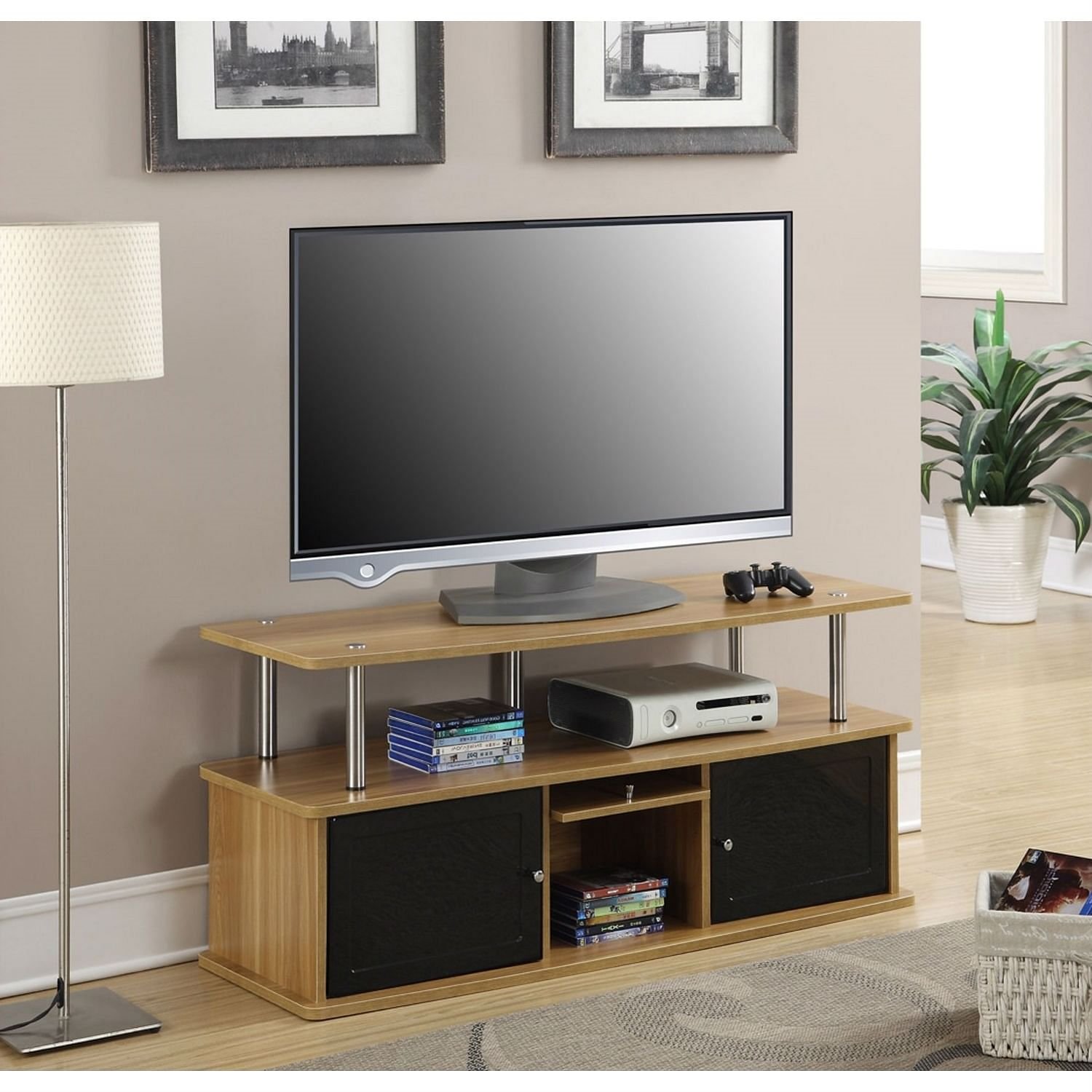 • Modern 50-inch TV Stand in Light Oak / Black Wood Finish