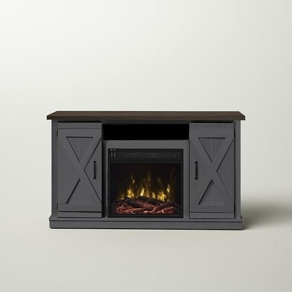 This FarmHouse Rustic Grey/Espresso TV Entertainment Electric Fireplace has a charming, rustic aesthetic and creates a cozy environment in any living room. Each of the 2 cabinets opens to store media players, games, books, and other equipment, while the 3 open shelves give you a place to display your favorite decorative objects. We love how the weathered look of the wood and barn doors add a farmhouse feel to your living room. Plus, a cable management cutout organizes your cords. Fits TVs up to 60''.
