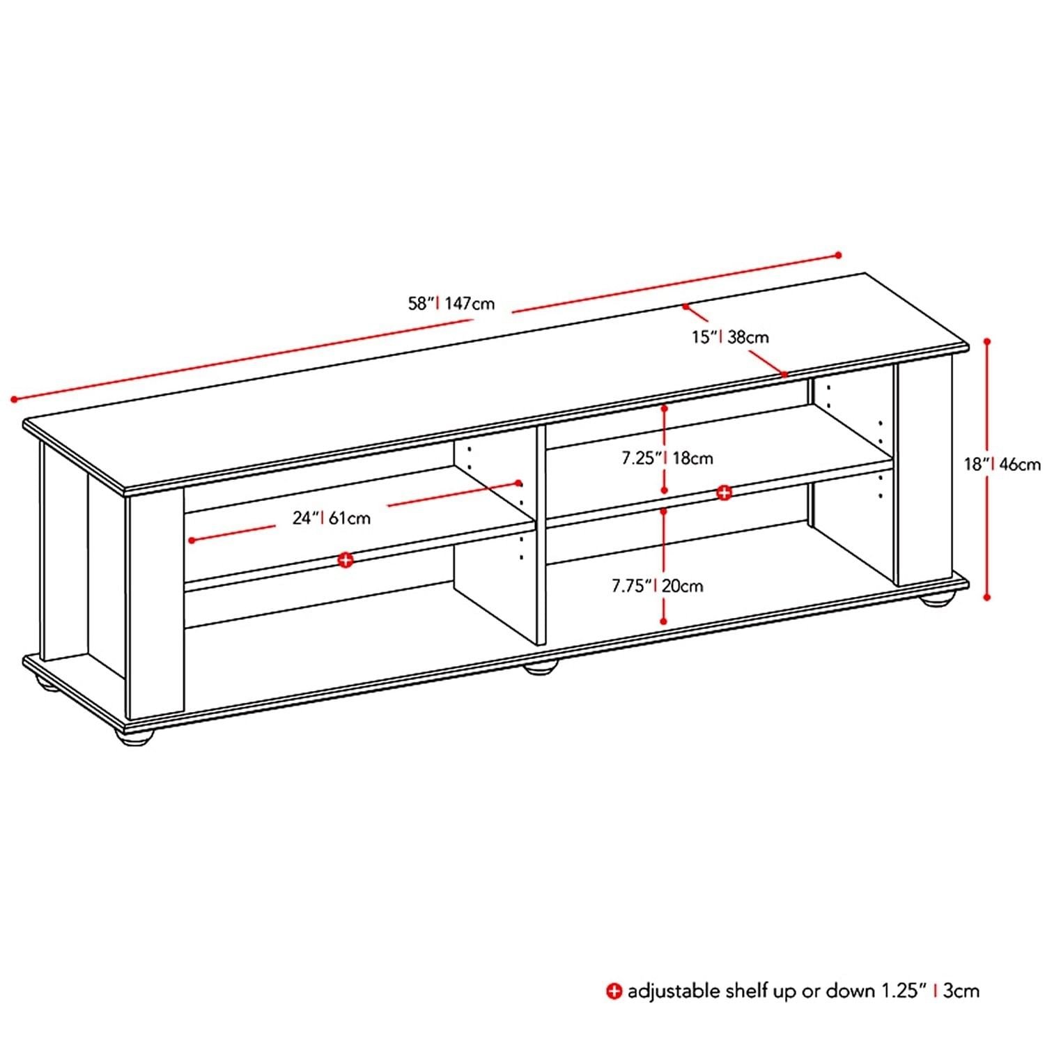 Enhance your living space with the contemporary design of this Modern Black TV Stand - Fits up to 68-inch TV. Enjoy the generous open storage space perfect for housing all of your A/V equipment, complete with adjustable shelves to customize your look. The open design provides ample storage space and crucial breathing room for all of your high valued electronics allowing them to perform at their full potential. Featured in our Midnight Black Lacquer finish this transitional stand can accommodate most 48-inch-68-inch TVs. Bring home this contemporary furniture by Sonax, proudly built in North America.