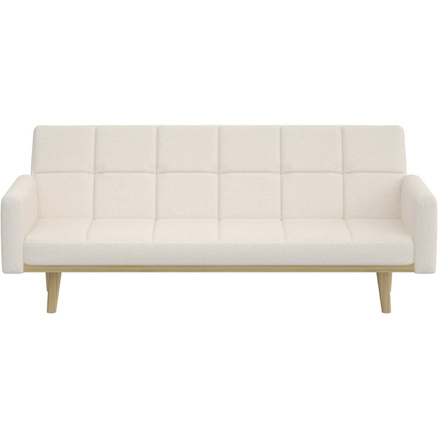 Modern Mid-Century Futon Sleeper Sofa Bed in Sherpa Ivory Fabric Upholstery Modern Mid-Century Futon Sleeper Sofa Bed in Sherpa Ivory Fabric Upholstery Modern Mid-Century Futon Sleeper Sofa Bed in Sherpa Ivory Fabric Upholstery