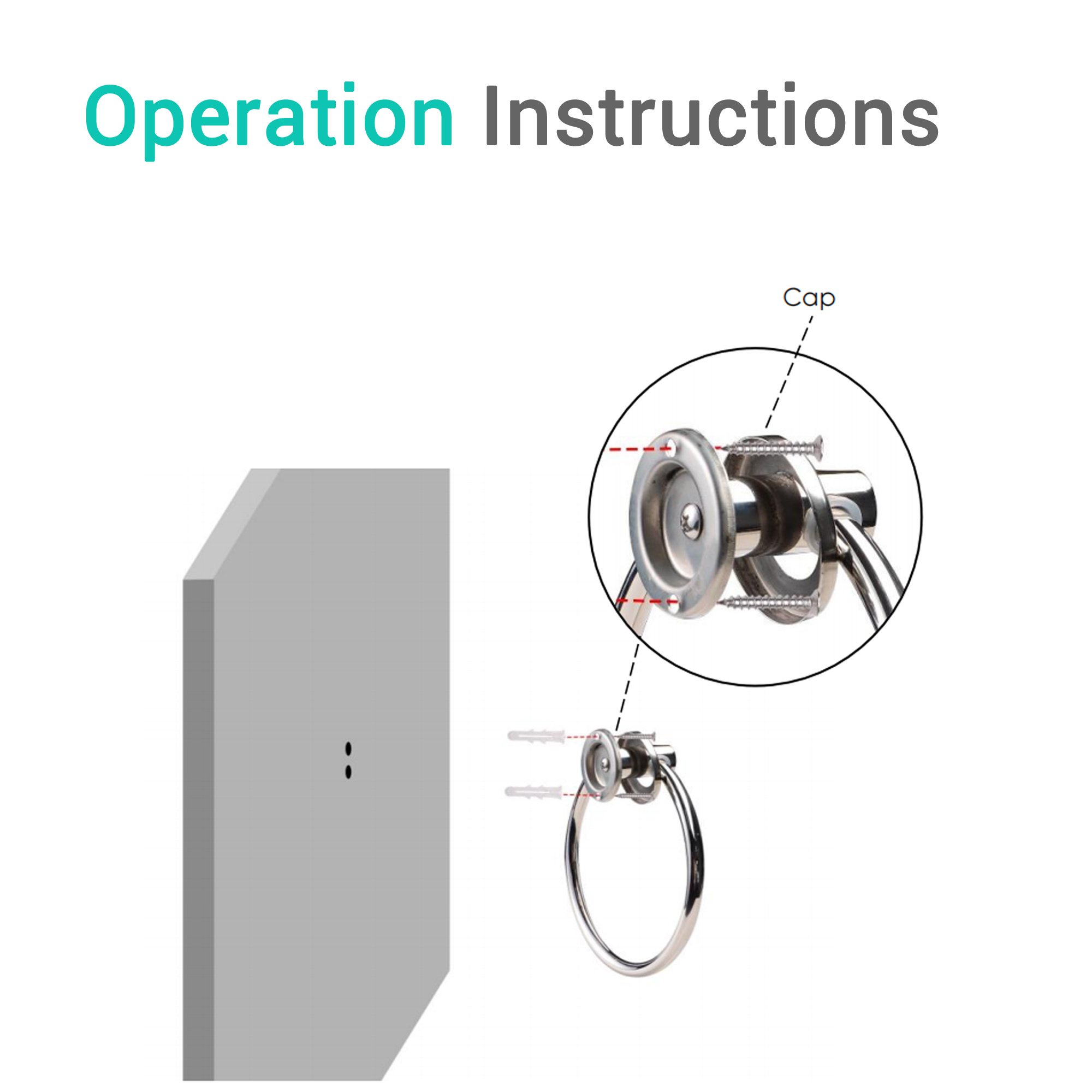 • Easy to Install - Screw  mounting design ensures better stability, fast to set up by drilling 2 pilot  holes on wall, attaching the towel ring holder to wall and finally fixating  with screws and plastic anchors provided